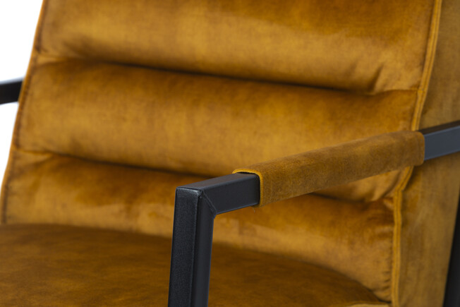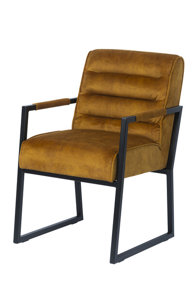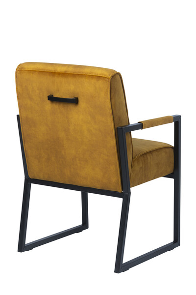 Deze eetkamerstoel is bekleed met een velours adore stof in de kleur goud/geel met de kleurcode 132.