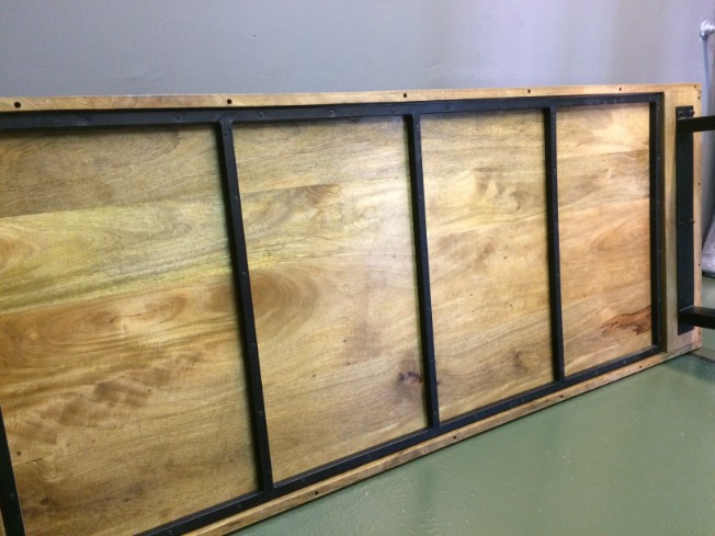De eettafel is voorzien van een mango blad, gecombineerd met zwart metalen U poten.